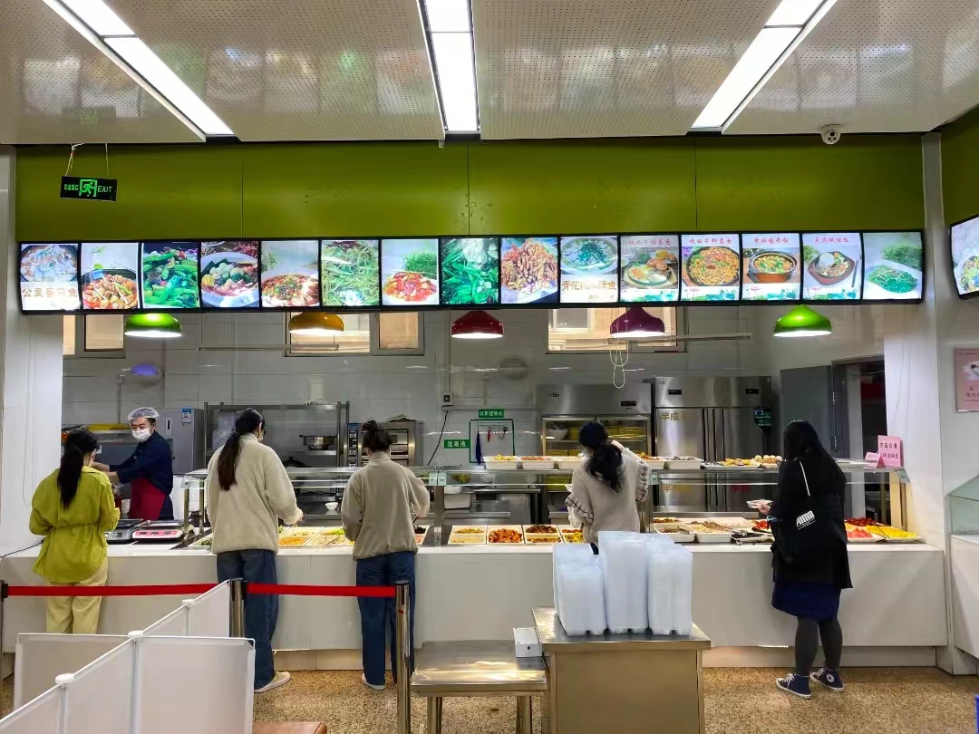 封校使得在校学生暂时隔绝了喜爱的外卖和山师东路的小吃。但是食堂美味佳肴营养均衡,也非常值得我们探索,不仅带来味觉的体验,也带来心情的愉悦,食堂工作的叔叔阿姨们绞尽脑汁创新菜品,保证健康的同时也满足了我们的味蕾。仅自选餐一个窗口能吃到二三十种菜,盒饭窗口也品类众多、物美价廉;还有各种汤面、打卤面,包子饼、水饺馄饨等面点。