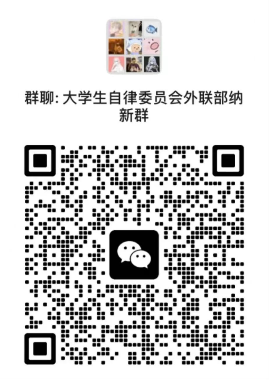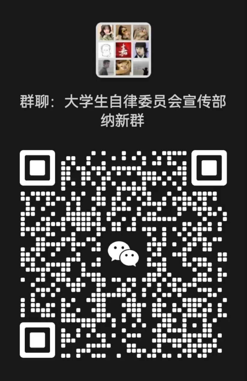 纳新方式:现场填写报名表并添加部门微信群,或扫描下方二维码进行线上报名