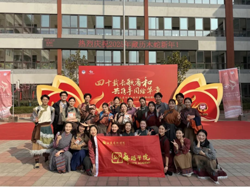 3月3日,舞蹈学院学子走进济南西藏中学,与学子们共庆藏历木蛇新年。此次活动以艺术为媒架起连心桥,不仅生动展现了舞蹈学院"以美育人、以文化人"的教育理念,更是对铸牢中华民族共同体意识、深化民族情感交融的生动实践。