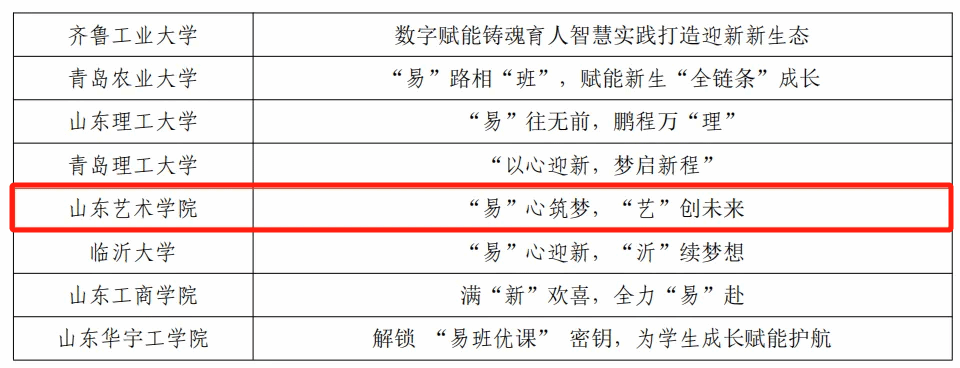 3月19日,山东高校易班发展中心公布了2024 年度山东易班共建高校优秀工作案例评选结果。经过高校申报、学校互评、专家评审、省教育厅审核,我校学生工作部报送的《“易“心筑梦,“艺”创未来》获评“优秀易班迎新案例”,戏剧学院辅导员郝荣华获评“优秀易班辅导员”。