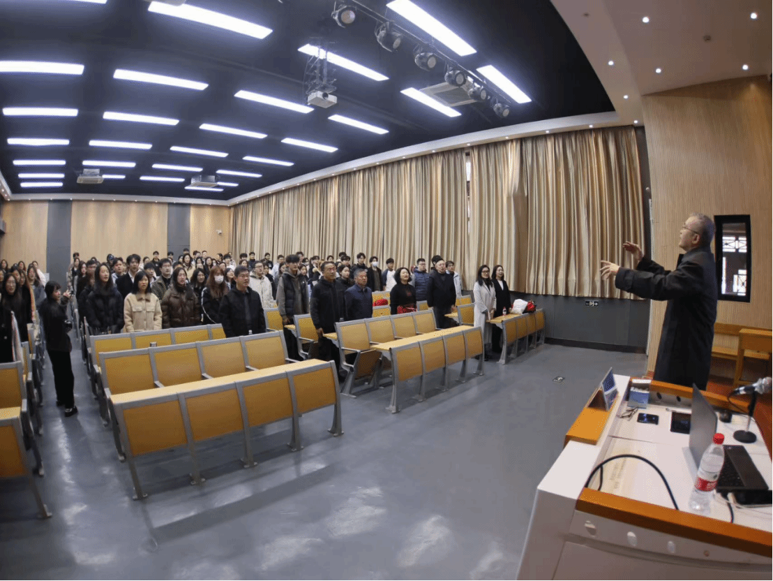 “起来!不愿做奴隶的人们!”讲座尾声,在于海教授激情指挥下,全体师生肃立,共同唱响国歌,用歌声表达着对祖国的深深热爱和坚定信念。