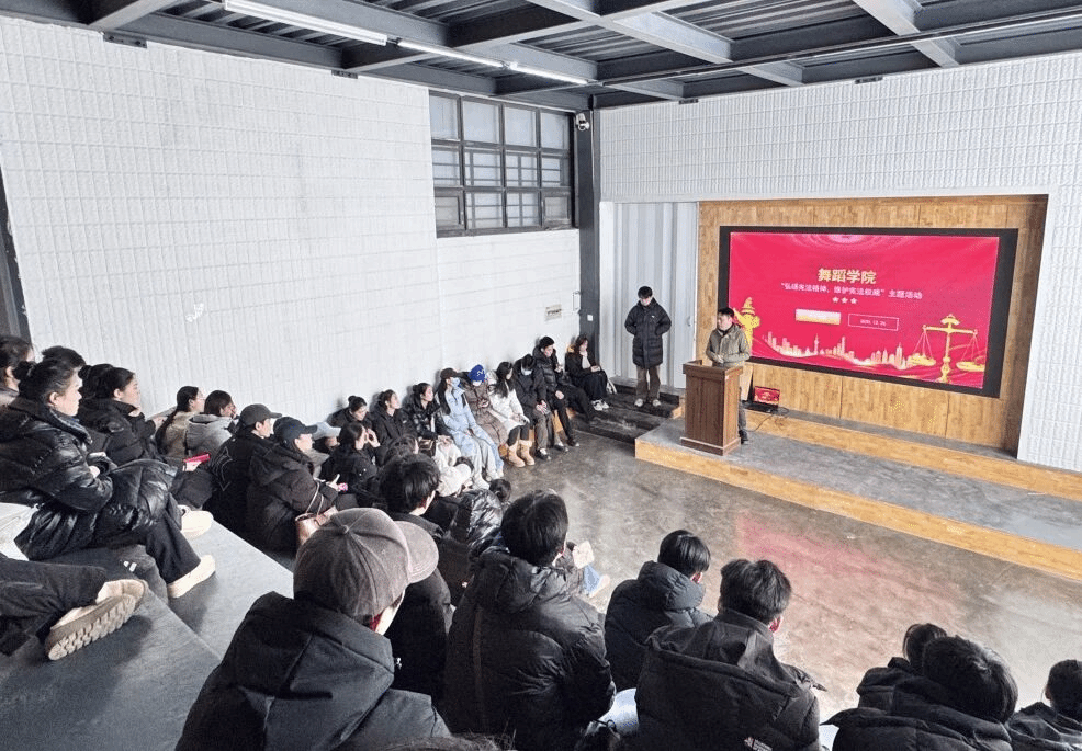 12月26日,舞蹈学院组织开展了“弘扬宪法精神,维护宪法权威”主题学习活动。舞蹈学院党总支副书记围绕宪法核心内容与精神实质,通过条文解读与案例分析等形式,讲解了宪法的地位作用、发展历程等。本次活动增强了学生的法治观念与规则意识,进一步促进了法治精神在艺术校园中落地生根。