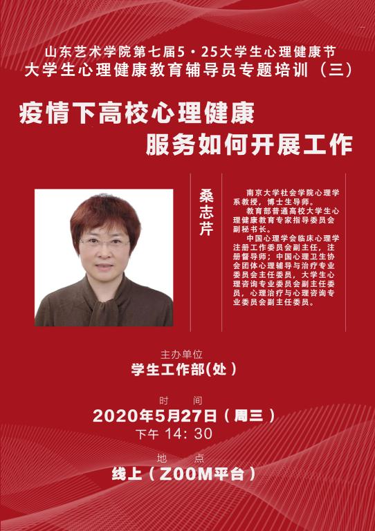 『艺苑·云心理』| 疫情下高校心理健康服务如何开展工作—大学生心理健康教育辅导员专题培训(三)预告