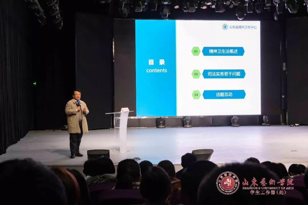11月26日下午,我校在长清校区实验中心一楼演播厅举行2019年辅导员素质能力提升专题报告会,山东省精神卫生中心副院长乔冬冬作了题为《<精神卫生法>实践操作要点》的专题报告。来自山东师范大学、齐鲁工业大学、山东中医药大学、山东交通学院、山东女子学院、山东工艺美术学院、山东管理学院等长清大学城七所兄弟院校的学工干部,我校各二级学院党总支副书记、团总支书记、全体辅导员,学生处、团委全体工作人员等120余人参加报告会。