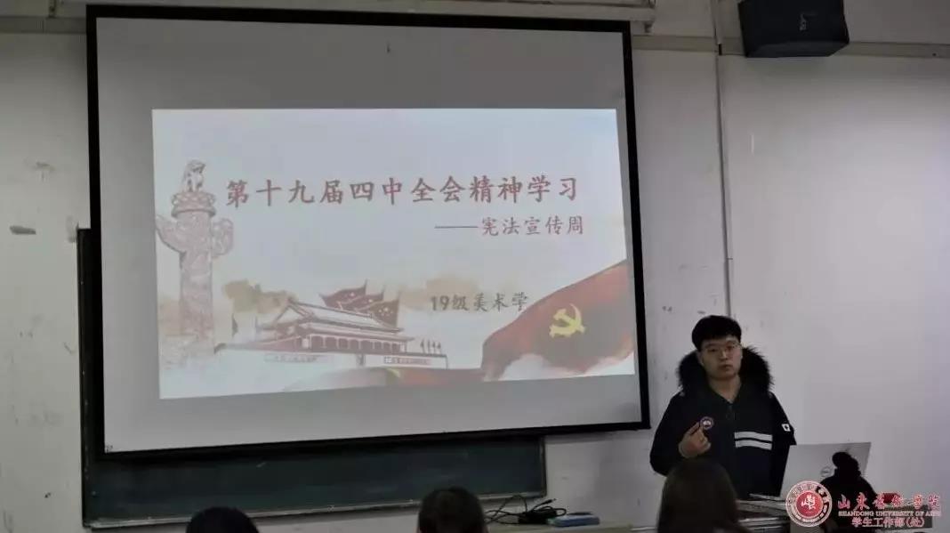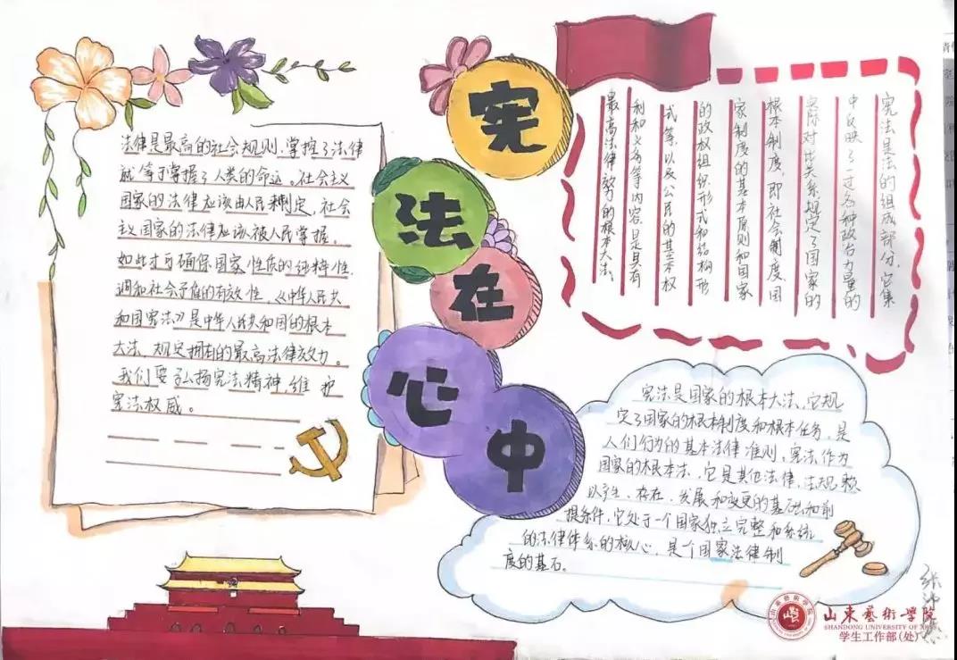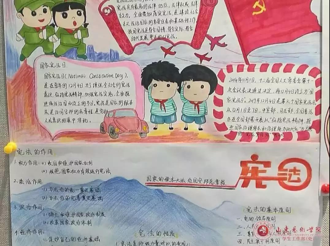 设计学院通过晨读宪法切实提高同学们法律意识,再以主题团课拉近宪法宣传与生活的距离,然后通过“山艺设计人”微信平台转发央视新闻的宪法宣传资料,提高宪法宣传权威性,最后结合专业特点,开展主题海报大赛,以宪法教育和专业学习相结合提升学生法律意识,着力培养懂法、用法的新时代大学生。