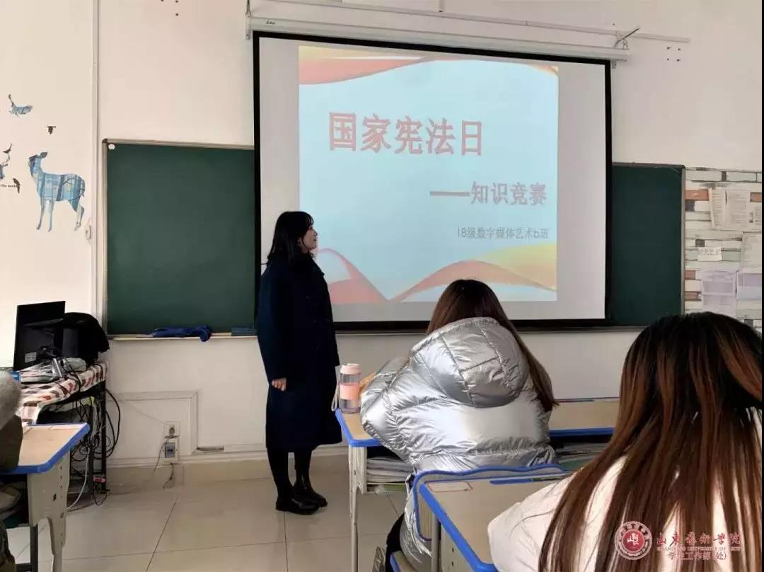美术学院通过组织学生晨读宪法、观看“我与宪法”微视频、张贴宣传周海报和积极开展宪法知识趣味闯关等活动,传播了宪法知识,增强了法律烙印,号召同学们用实际行动弘扬宪法精神,维护宪法权威。