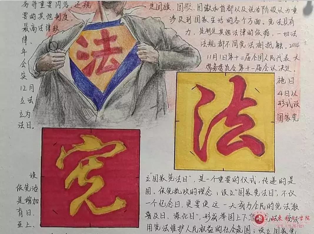 电影学院通过开展主题演讲会、海报设计大赛等活动积极引导同学们自觉学法、懂法、用法,不断增强学生法治观念,深化对宪法的理解,提高法律意识,帮助学生树立法制观念,促进其健康成长。