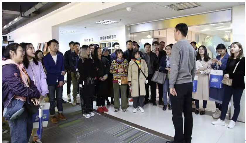 下午一点半,一行人到达知名企业世纪开元进行参观,同学们共同观看企业宣传片,对公司的发展与企业文化有了初步认识。企业员工代表杨汉东对前来参观的老师同学表示热烈欢迎,并就集团发展、人才培养等向大家做了介绍。随后,来自设计中心的范雅丽总监和产品中心的王欣总监分别对所在部门的工作内容和工作环境进行了介绍,鼓励同学们强化专业技能,努力奔跑,勇敢追梦,希望同学们能加入世纪开元这个有实力、有潜力的大家庭!