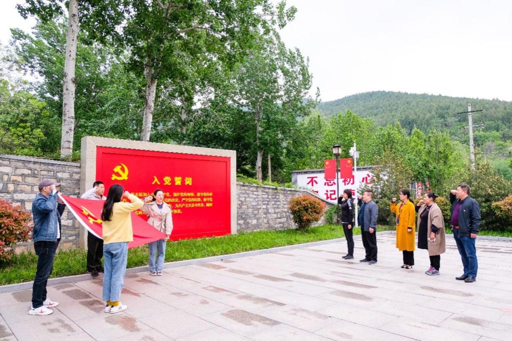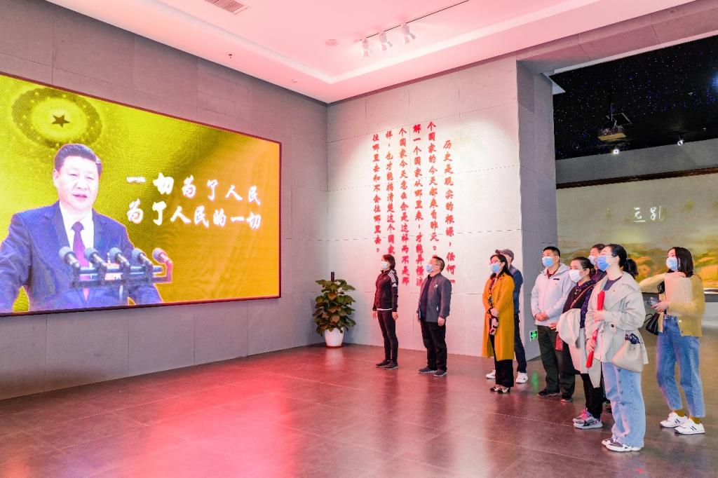 随后,全体党员来到纪念馆外的初心广场,面对党旗进行了庄严的宣誓,重温了入党誓词。