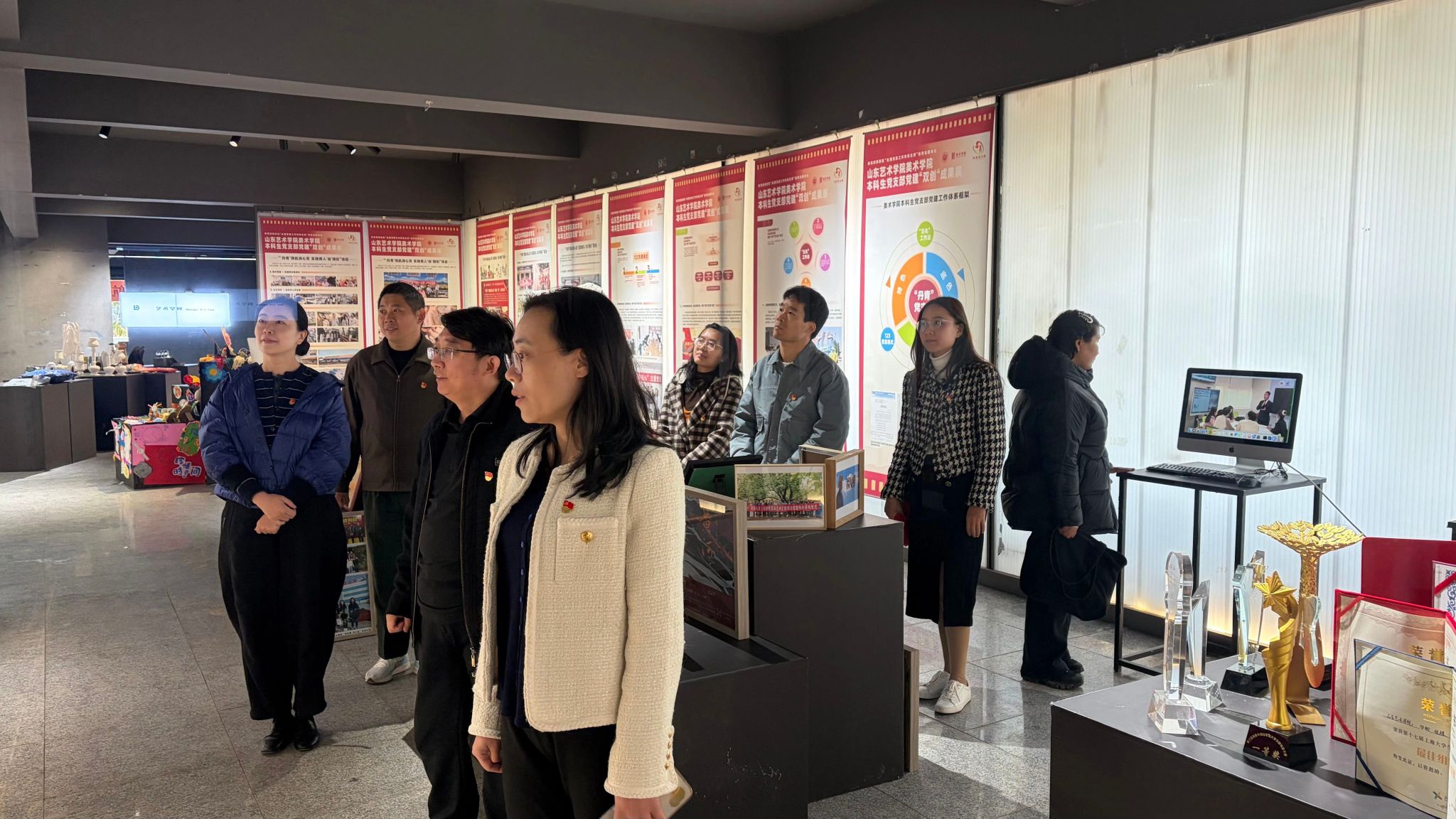 为深入学习学校党建“双创”优秀成果,切实将党建力量与校庆氛围深度融合,10月22日,我校学生处党支部组织全体党员,前往长清校区设计学院一楼展厅,开展“领航山艺 争先创优”主题党日活动,在沉浸式学习中凝聚奋进力量,以实干担当为校庆添彩。