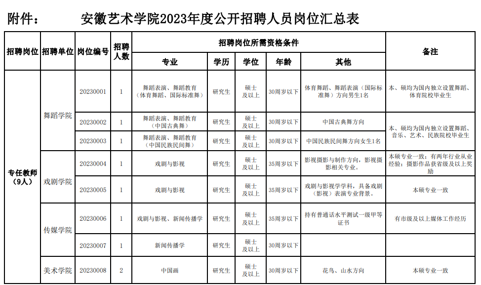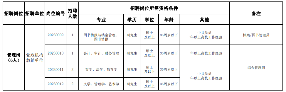 此次公开招聘紧缺专业教师9名,管理人员6名,具体岗位要求见附件岗位汇总表。