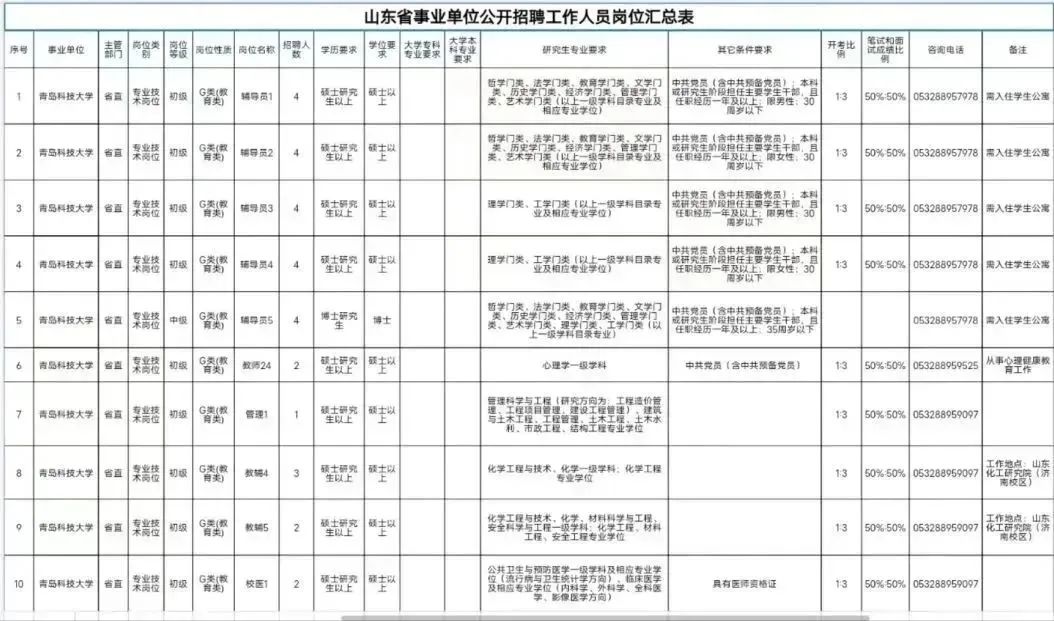 具体岗位条件详见《山东省事业单位公开招聘工作人员岗位汇总表》(附件1)。