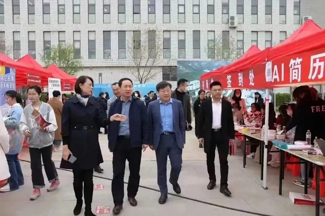 山东省教育厅学生处处长李存岭,淄博市公共就业和人才服务中心党委成员、副主任崔向军、宣传调研科副科长高中贺,院长徐青峰、党委副书记杨西国、党委委员、宣传部部长孔宪坤现场检查指导工作。