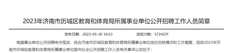 附件1:2023年济南市历城区教育和体育局所属事业单位公开招聘工作人员岗位汇总表.pdf