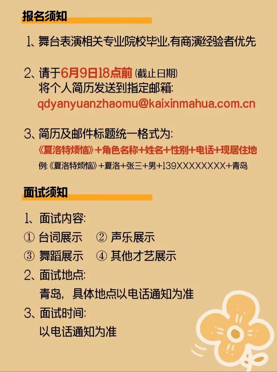 『艺苑•招聘』| 开心麻花经典爆笑舞台剧《夏洛特烦恼》青岛组演员招募