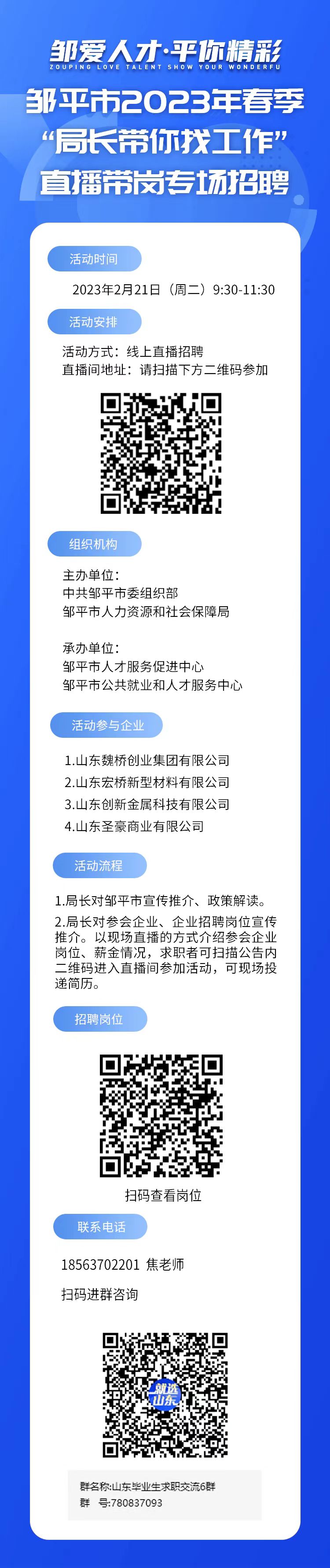 『艺苑•招聘』|邹平市2023年春季“局长带你找工作”直播带岗专场招聘