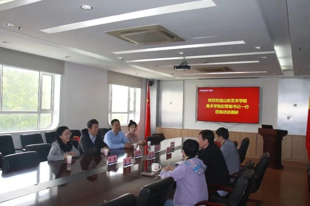 美术学院党委书记纪军郁、党委副书记贾立群、团总支书记田静、辅导员李欣颖、辅导员田潇一行于5月10日访问了浪潮数字科技有限公司,山东美术馆和山东丽山教育科技公司,5月15日访问了中国石油山东济南销售分公司和浪潮软件集团有限公司。浪潮数字科技有限公司总经理马恿、山东美术馆馆长杨晓刚、山东丽山教育科技公司总经理孙锡祝、中国石油济南销售分公司总经理祖友云、浪潮软件集团有限公司副总经理任嘉宁等出席座谈会。
