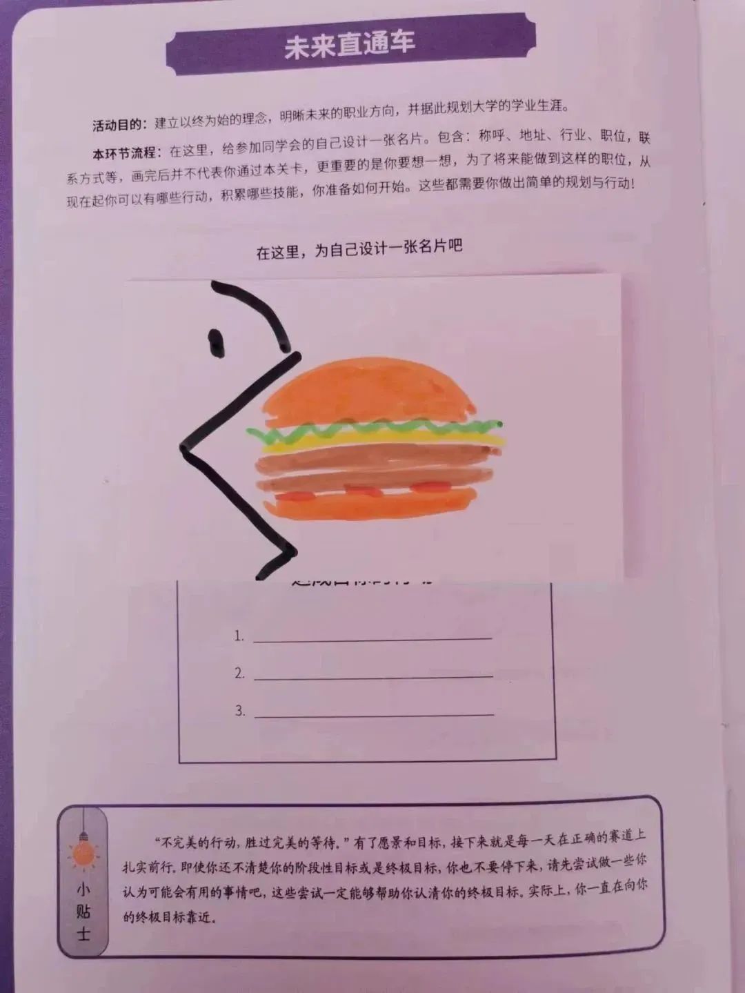 本次活动通过1本手册、12个关卡活动,带领大家沉浸式体验生涯规划,唤醒生涯意识、认识自我!通过参与活动,同学们对生涯规划的重要性,对自我和学习生活的外部环境有了更加深入的认识和理解,对如何进行生涯规划,如何决策行动、如何做好时间管理,如何养成良好习惯等也有了自己的想法。