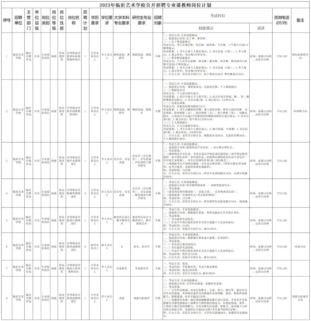 招聘岗位计划及具体要求详见《2023年临沂艺术学校公开招聘专业课教师岗位计划》(附件1)。
