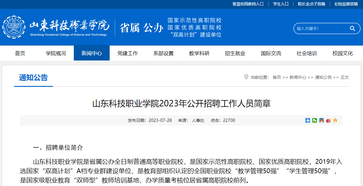 『艺苑 · 招聘』| 山东科技职业学院公开招聘公告