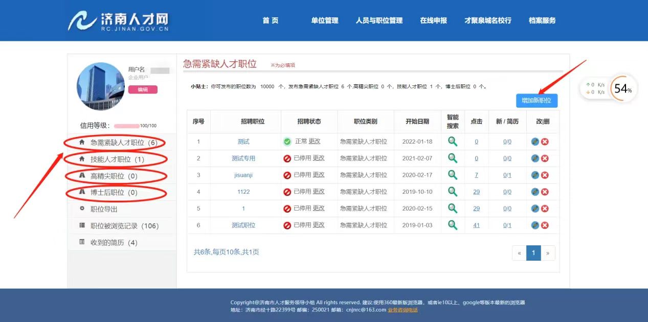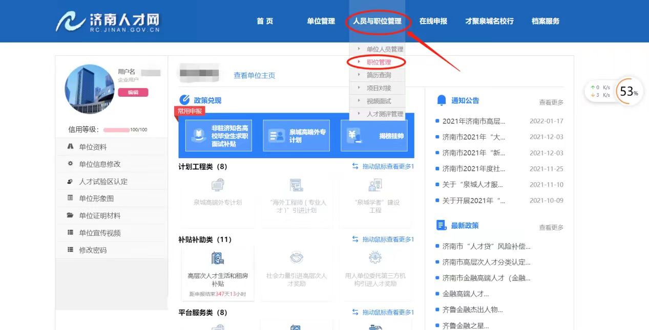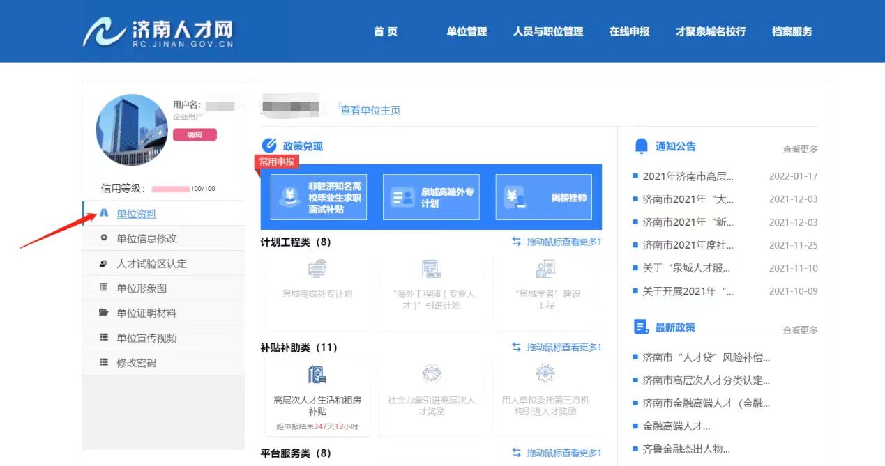 1、单位需在“济南人才网”(rc.jinan.gov.cn)注册账号,如下图(已经有账号的单位可直接登录平台)。