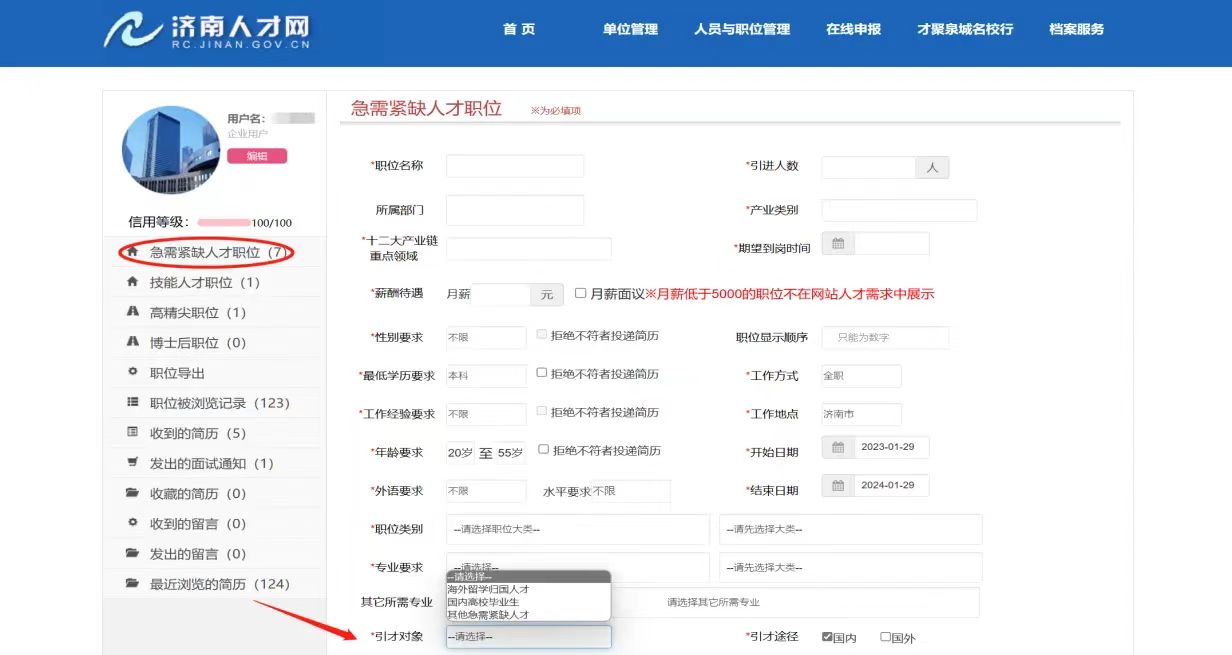 海外留学归国人才,可在“急需紧缺”人才职位类别下,填写具体职位信息;高级工程师,可在“高精尖”人才职位类别下填写具体职位信息。