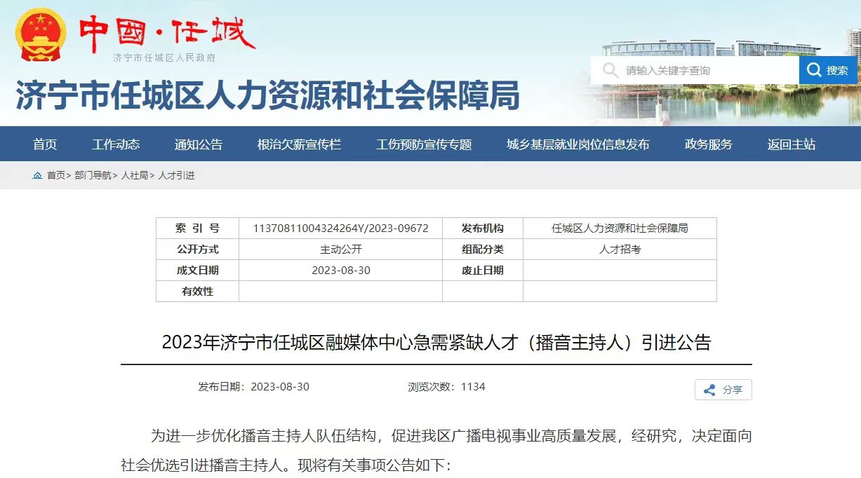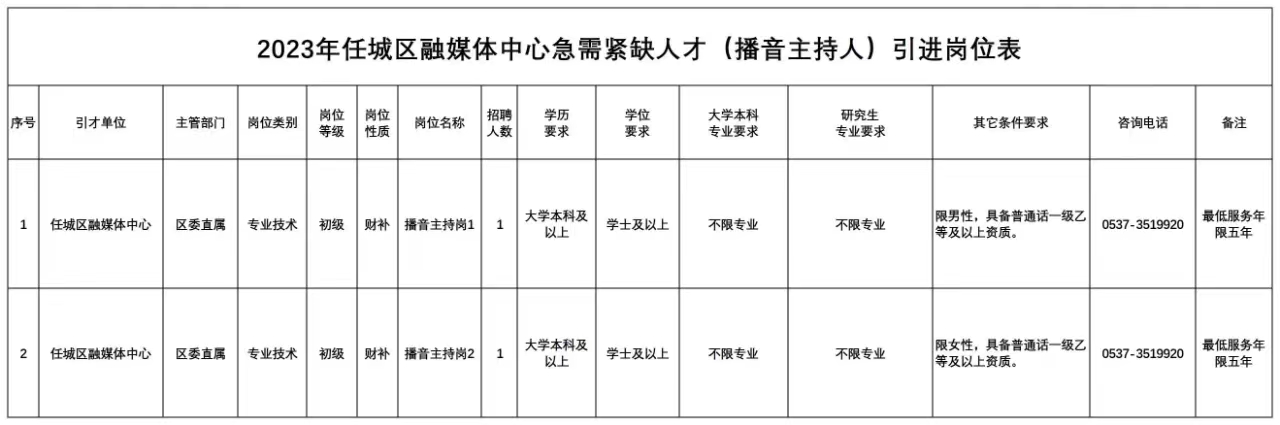 附件1:2023年任城区融媒体中心急需紧缺人才(播音主持人)引进岗位表