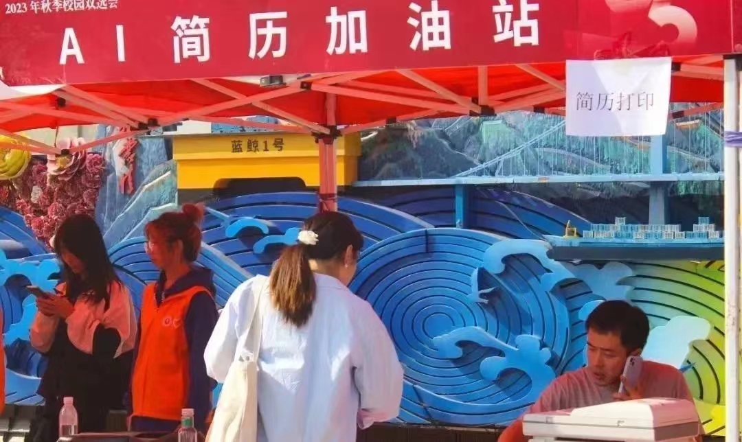 作为本次双选会的亮点之一,学校在双选会现场设置了“AI简历优化实验室”专区,让学生现场体验个人简历优化一键生成。毕业生可输入简历初始文本,AI帮助一键生成智能简历,多维度精准分析简历内容、竞争力,生成专属简历报告等。双选会还增加了“青鸟计划”“大学生应征入伍”“就业加油站”“地市就业”等专区,鼓励毕业生到基层、到部队磨炼成长;设立了大学生创新创业团队成果展示区,“紫薇路6000号”、“鲁绣技艺的现代化创新应用”作为创新创业项目代表展示自己的原创艺术作品,吸引了众多师生驻足。