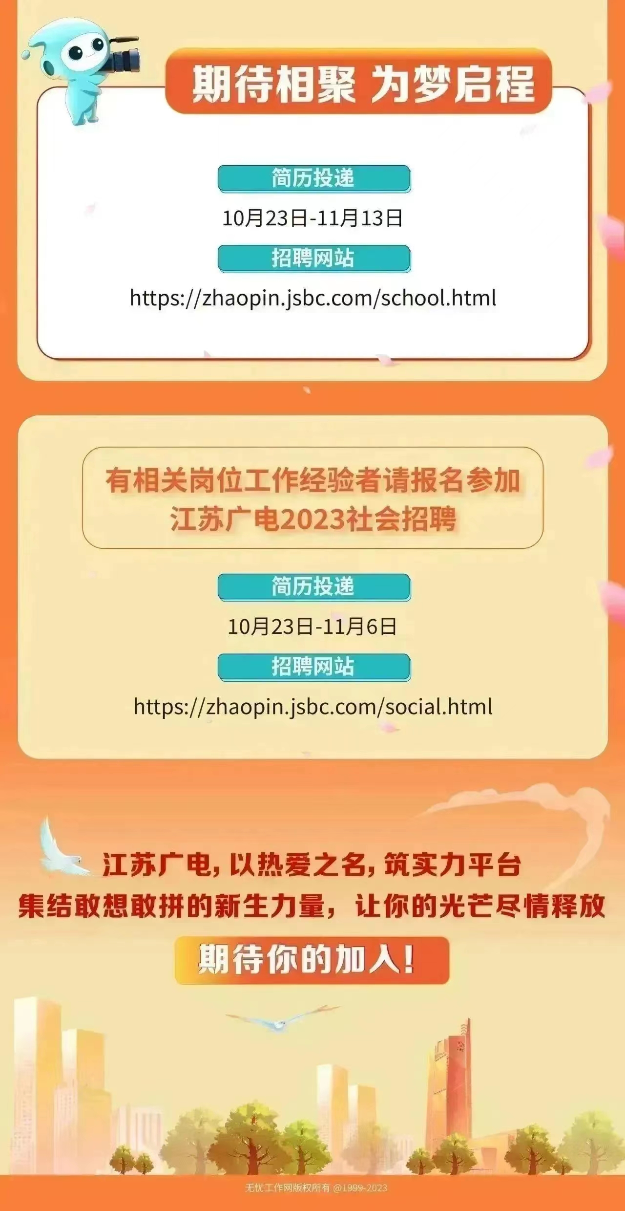 『艺苑•招聘』| 江苏广电2024年校园招聘全面启动!