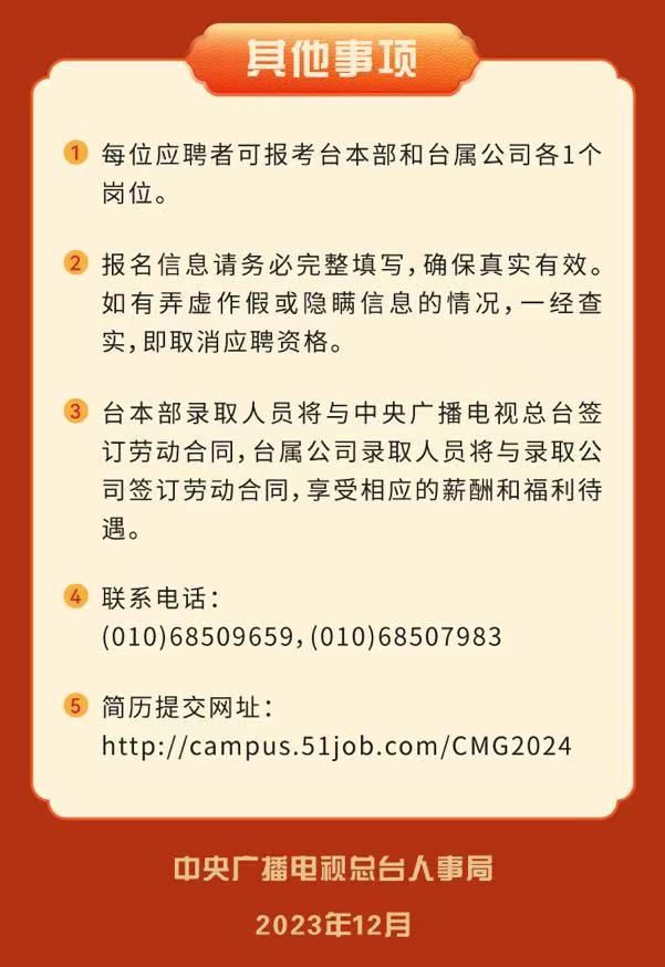 『艺苑•招聘』| 中央广播电视总台2024年度公开招聘