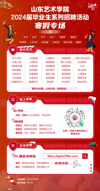 『艺苑•招聘』| 寒假专场—山东艺术学院2024届毕业生系列招聘活动