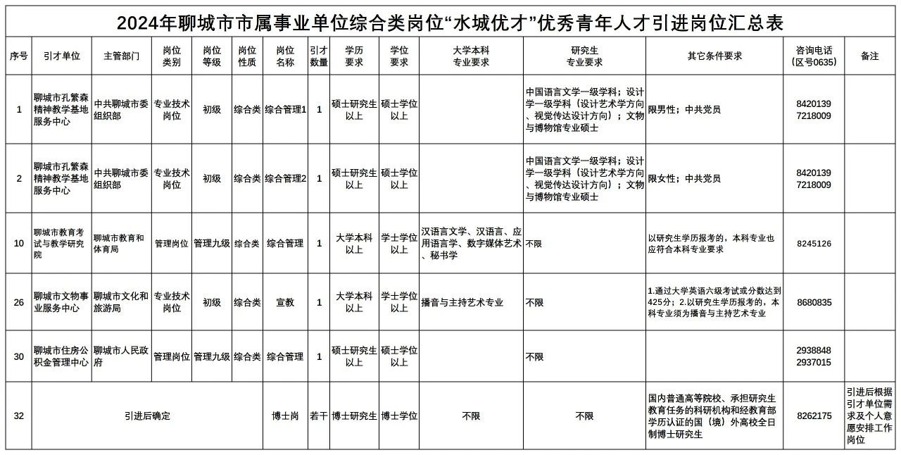为贯彻落实中央和省、市委人才工作会议精神,深入实施人才强市战略,持续优化我市事业单位人才队伍结构,更好地服务全市经济社会高质量发展,聊城市决定开展2024年度“水城优才”优秀青年人才引进工作,现将有关事项公告如下。