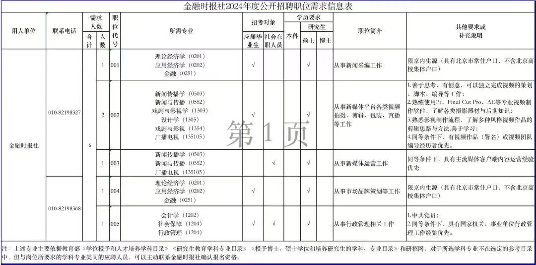 1.笔试:金融时报社将以短信形式通知报考人员笔试有关事宜,报考人员填报联系方式时应确保能及时联系到本人。本次笔试不指定复习用书。报考人员接到通知后,按照通知要求准时参加笔试。