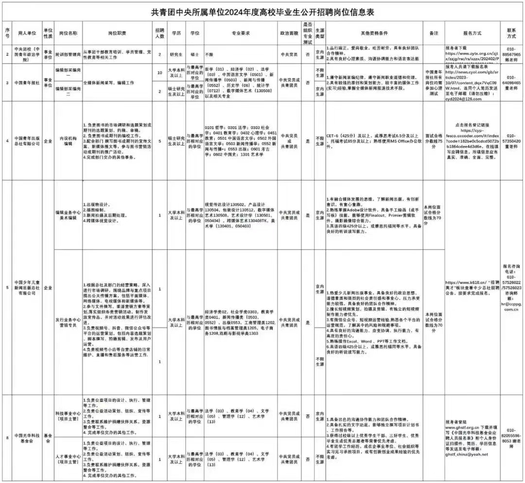 报名咨询电话:详见《共青团中央所属单位2024年度高校毕业生公开招聘岗位信息表》