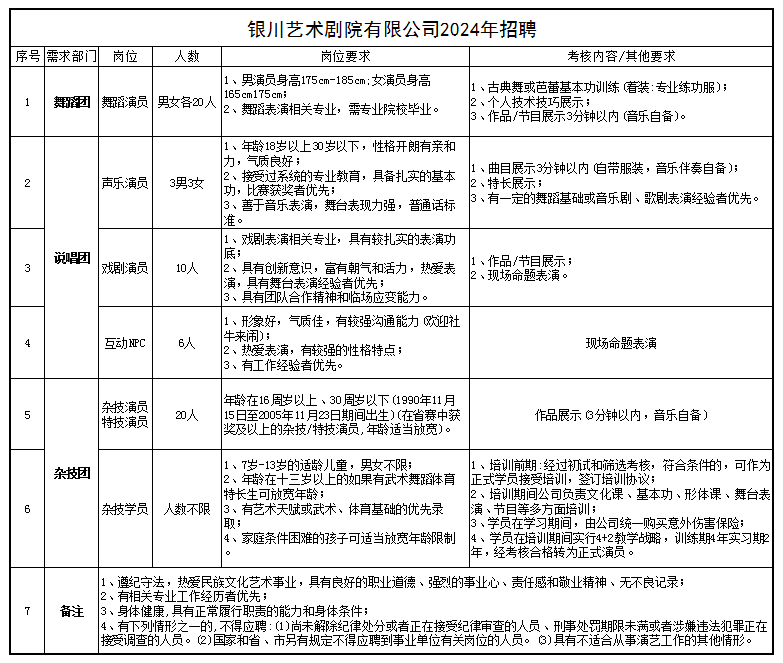 『艺苑•招聘』|银川艺术剧院有限公司2024年招聘