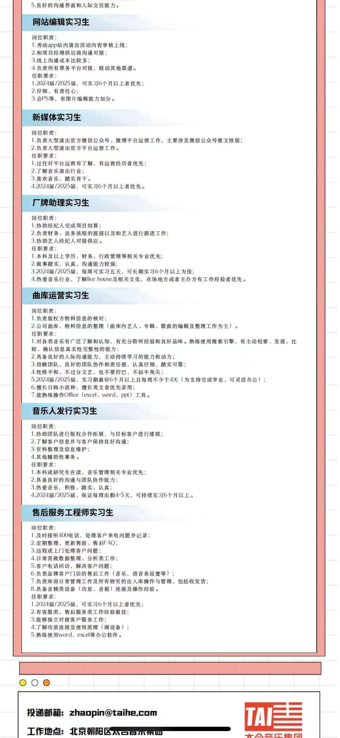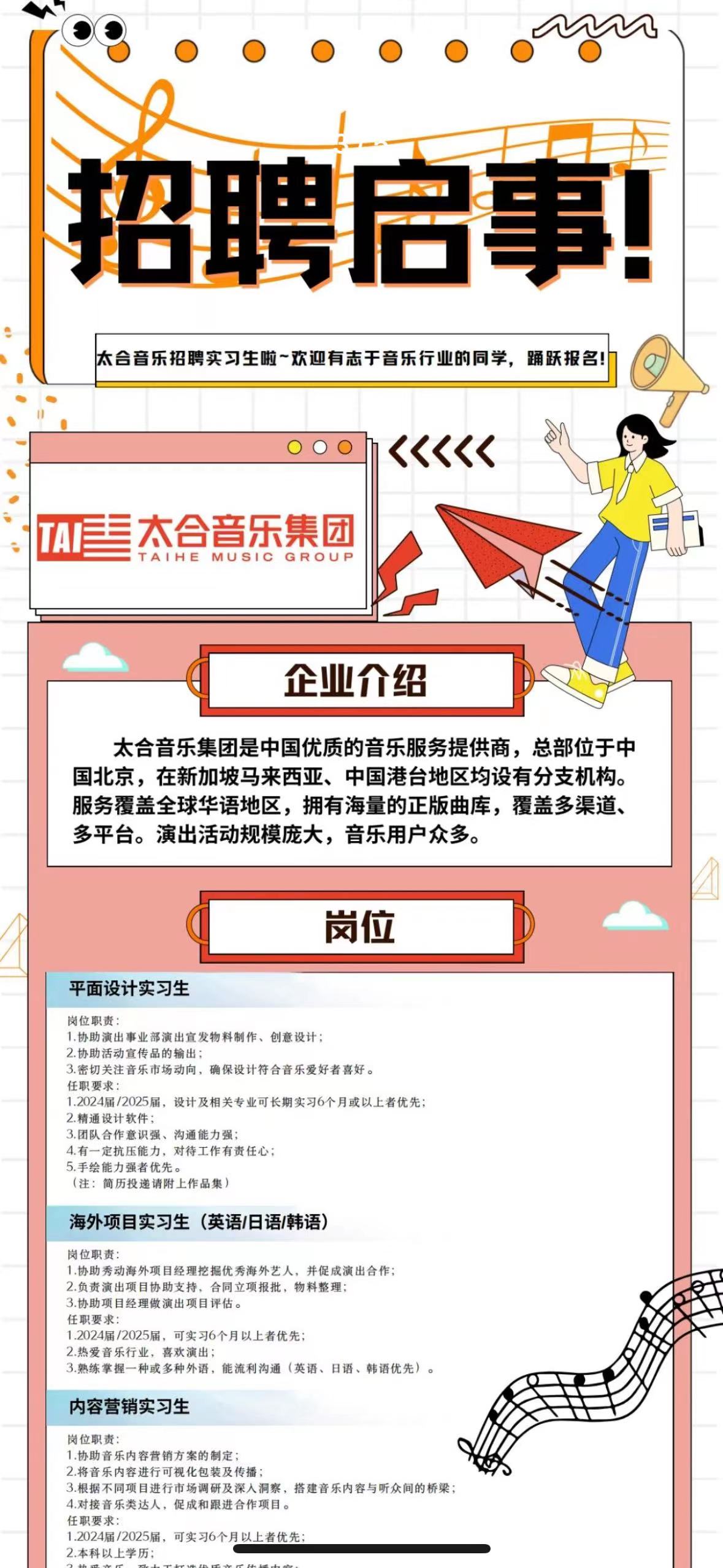 『艺苑•招聘』| 太合音乐集团2024年招聘