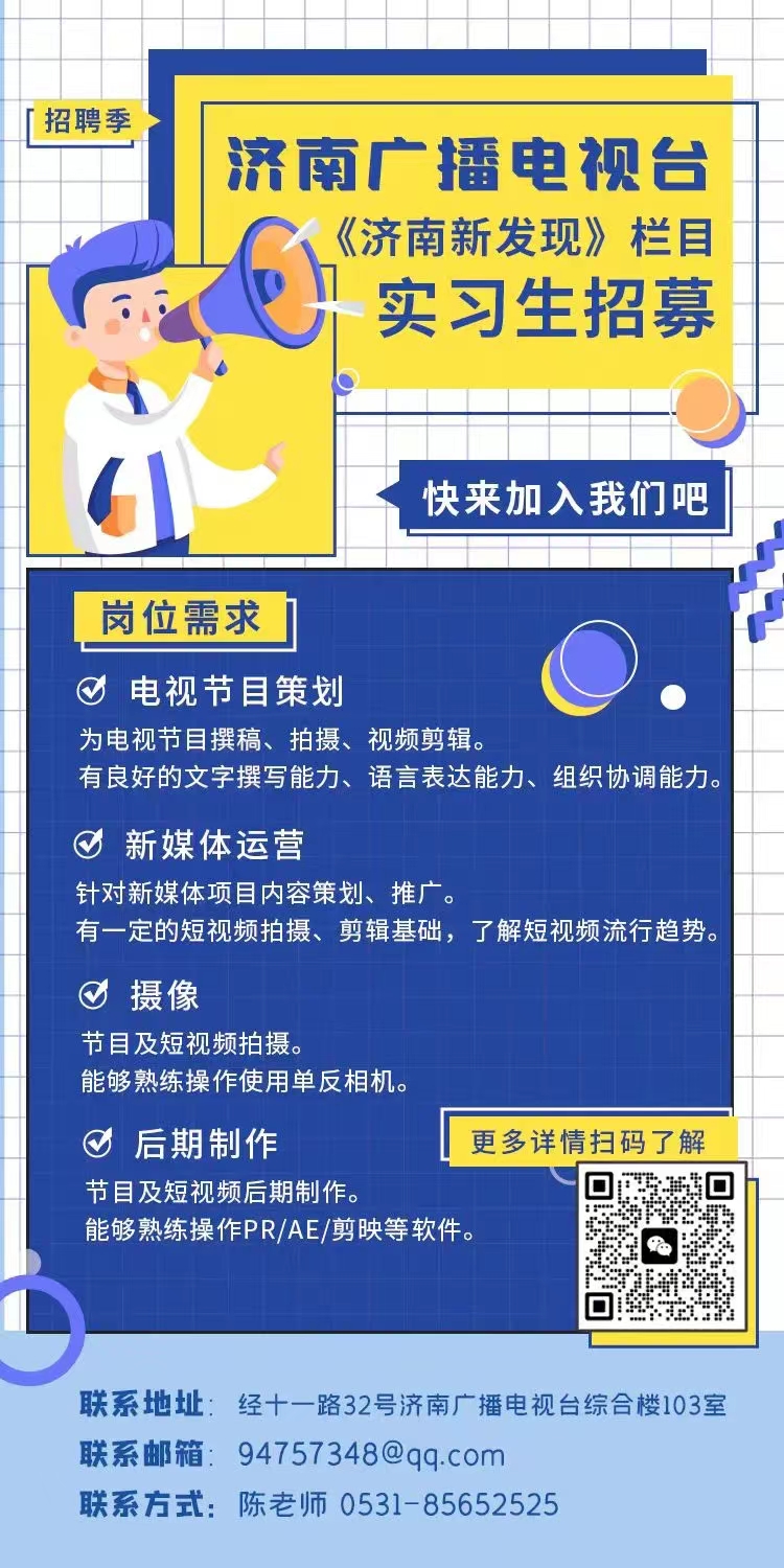 『艺苑•招聘』| 济南广播电视台实习生招聘