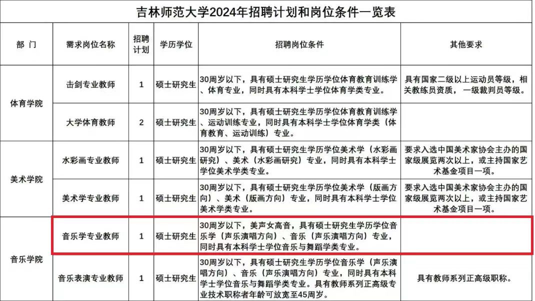 6.岗位要求的具体条件详见《吉林师范大学2024年招聘计划和岗位条件一览表》(附件)。