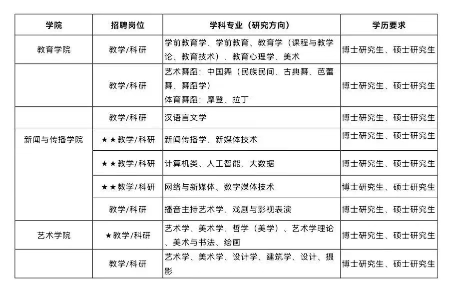 1.招聘岗位前面标注★★★为重点学科,标注★★培育学科,标注★为储备学科。