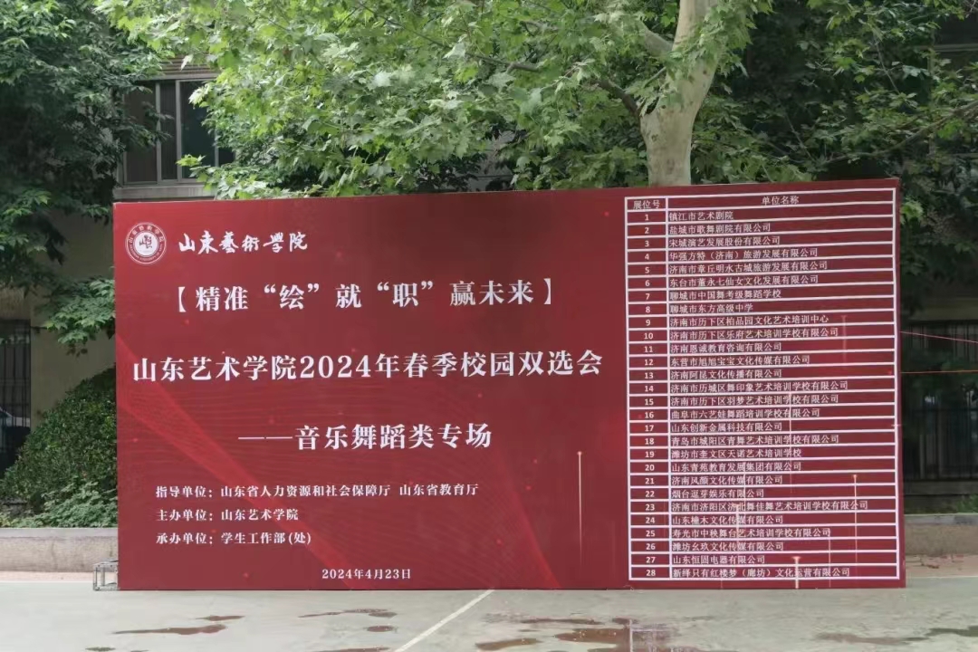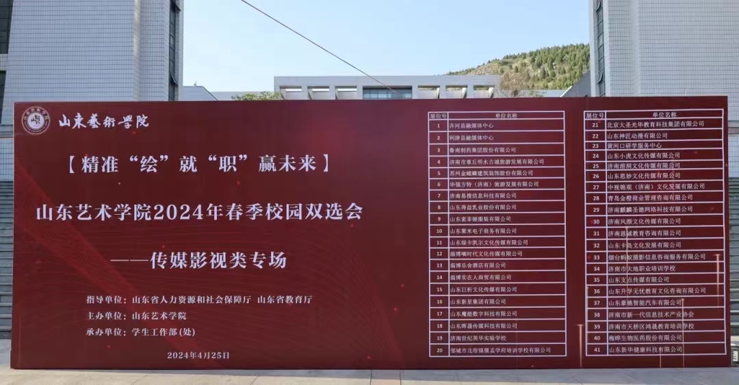 为积极搭建毕业生与用人单位双向选择对接平台,大力促进我校2024届毕业生充分就业,4月23日、25日【精准“绘”就 “职”赢未来】山东艺术学院2024年春季校园双选会--音乐舞蹈类专场和传媒影视类专场分别在文东校区和长清校区举行。
