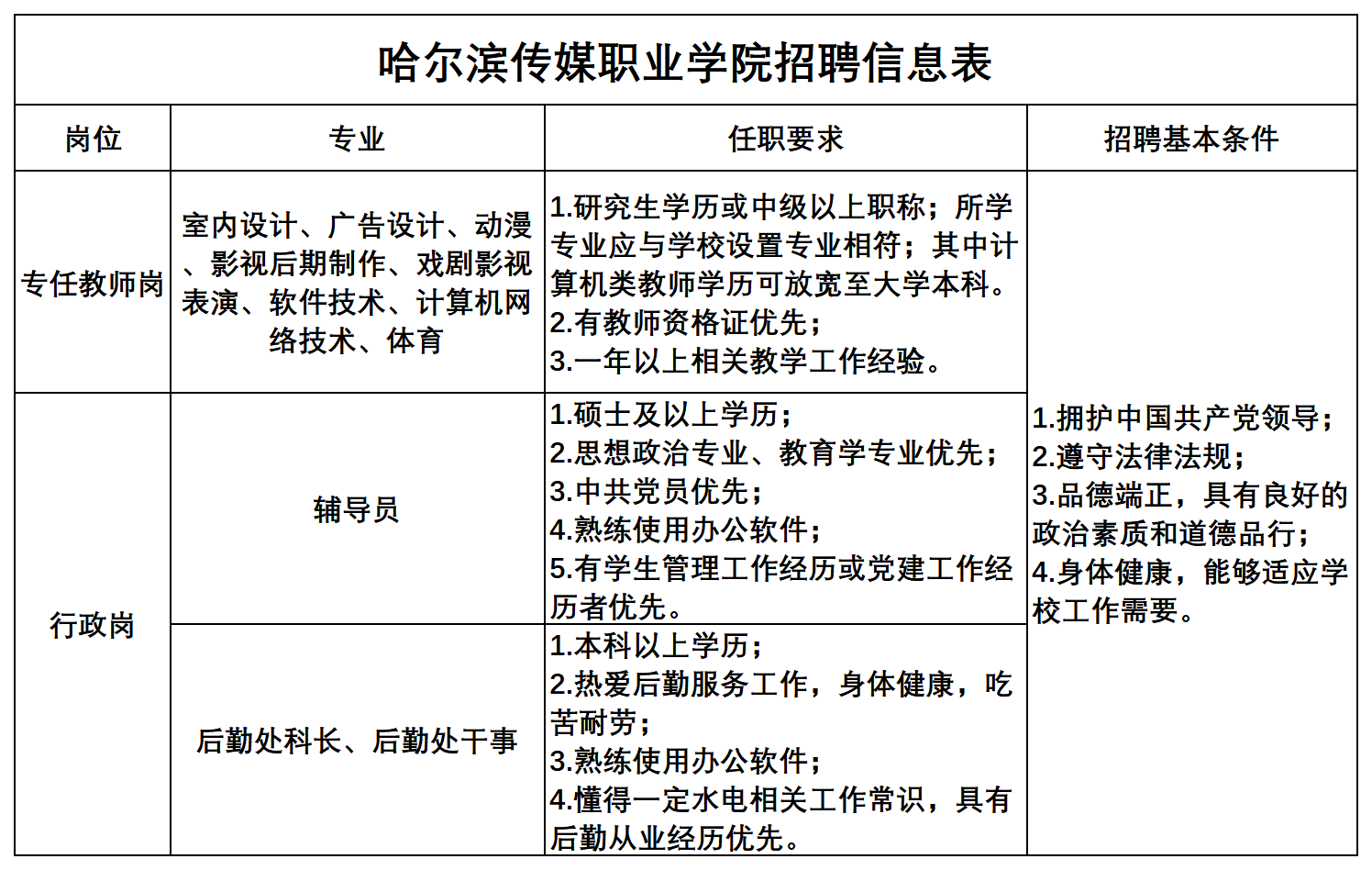 为了适应学校事业发展需要,现面向社会公开招聘工作人员,热忱欢迎有识之士加盟,具体招聘岗位及要求如下: