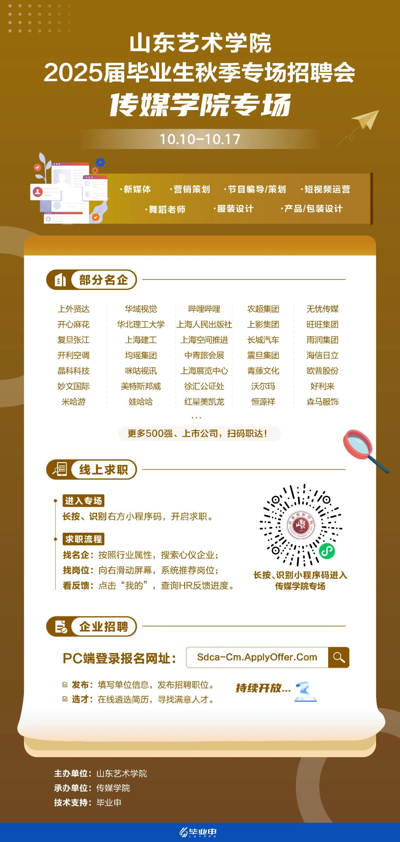 传媒学院专场 | 山东艺术学院2025届毕业生秋季专场招聘会(2024.10.10-10.17)