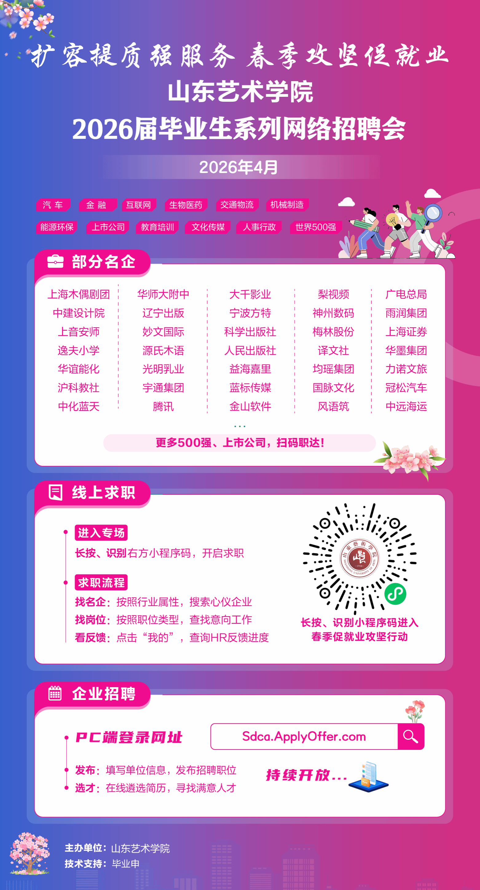 为贯彻落实教育部关于2026届毕业生就业工作的总体部署,落实就业育人工作要求,有效助力我校毕业生高质量充分就业,现决定举办专场线上招聘活动。
