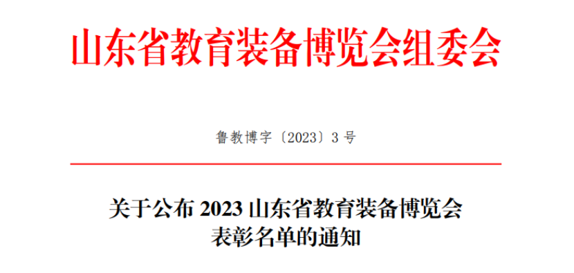 近日,经山东省人民政府批准,由山东省教育厅和济南市人民政府共同主办,山东省教育发展服务中心与济南市教育局承办2023 山东省教育装备博览会公布表彰名单,学校获得“创新创业教育成果展演活动-优秀展示奖”。