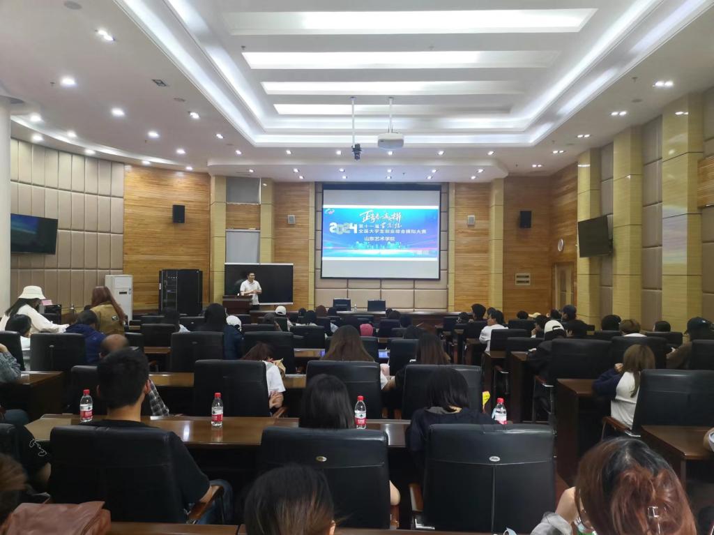 4月19日下午,“学创杯”全国大学生创业综合模拟大赛山东艺术学院赛前培训会议在长清校区办公楼二楼报告厅如期举行,全校100余名师生参加。