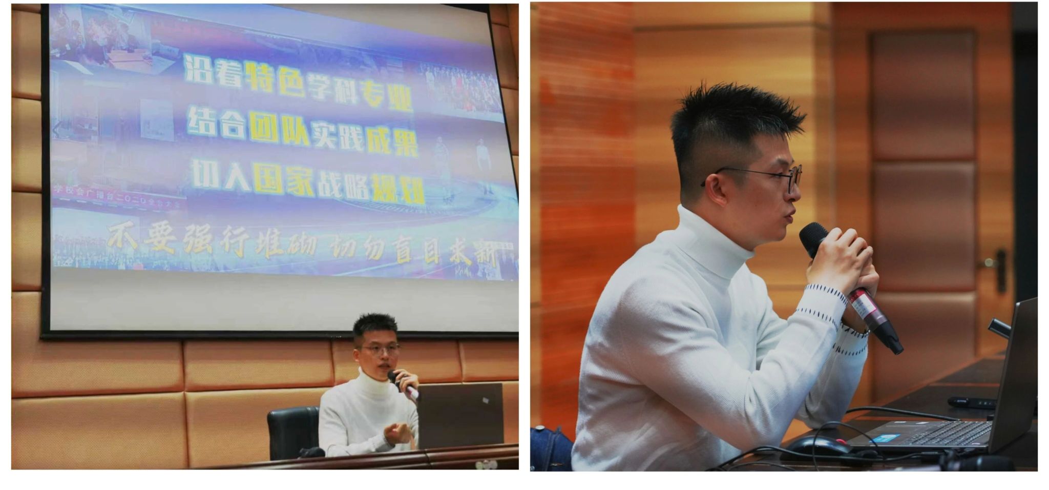 分享会现场气氛热烈,户鹏飞以“创路漫漫其修远 艺术类的创新创业赛事攻略”为题,从不同角度,全方位、多维度地剖析了“双创”竞赛的备赛要点与成功秘籍。在项目选题与培育方面,分享了如何从专业特色和社会需求出发,寻找创新点,将艺术创意与市场需求紧密结合,打造出既有艺术高度又有商业潜力的优质项目。在团队组建与协作方面,一个结构合理、优势互补的团队是成功的基石。结合自身经历,讲述如何凝聚不同专业背景的成员发挥团队效应。在路演展示与答辩技巧方面,通过自身案例,重点分享了现场答辩的应变策略。