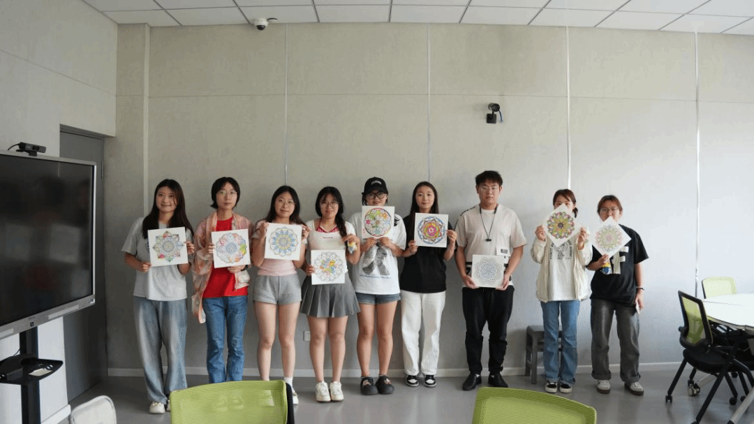 5月21日下午,“彩绘曼陀罗,静心绽芳华”主题艺术体验活动在长清校区智慧教室举办,由阳光心理协会主席、美术学院本科生吴芊芊带领。绘制曼陀罗的对称图案与色彩表达,在专注创作中梳理情绪、舒缓压力。体验活动包括吹来了默契的“大风吹”,齐心共创的“同心绘画”,用色彩与线条自由创作“曼陀罗绘画”。最后,同学们相互欣赏彼此的作品——在生活的这块画布上,大家永远拥有选择颜色的自由。