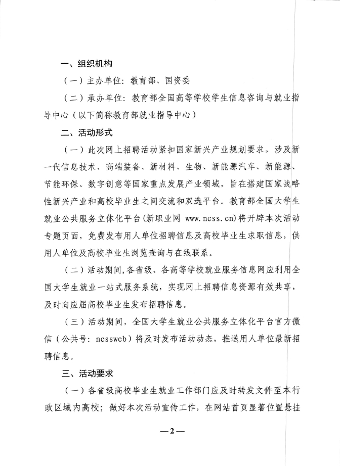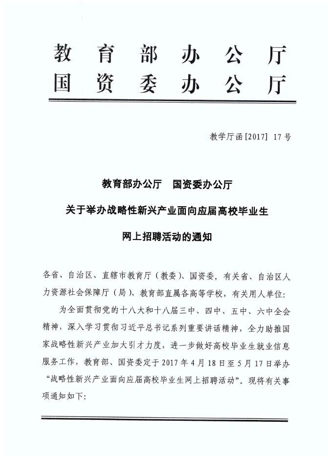 教育部办公厅 国资委办公厅关于举办战略性新兴产业面向应届高校毕业生网上招聘活动的通知
